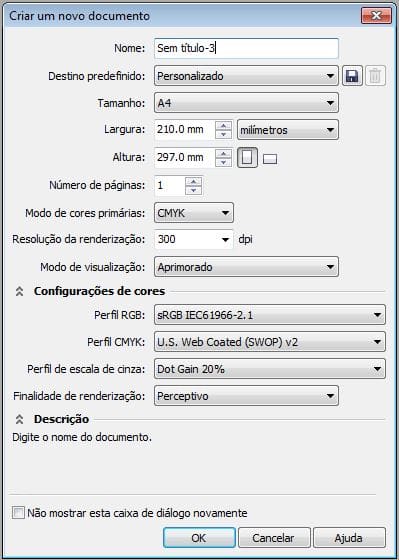 - Inicie o CorelDRAW e clique em Novo documento em branco na tela de boas-vindas. Configure o documento como mostrado na Figura 1.