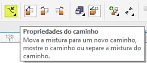 Selecione o grupo misturado e clique no ícone Novo caminho na barra de propriedades da ferramenta Misturar. O cursor se transformará em uma seta preta ondulada.