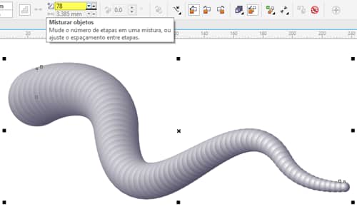 É possível reforçar esse efeito, aumentando o número de etapas na mistura ou alterando o tamanho do primeiro ou do segundo objeto. A ferramenta Misturar é altamente interativa e permitirá que você veja as alterações à medida que forem sendo realizadas.