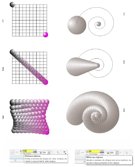 A ferramenta Misturar é um recurso há muito conhecido do CorelDRAW, mas a sua funcionalidade foi melhorada ao longo dos últimos anos, especificamente a forma mais interativa de aplicar misturas a objetos.