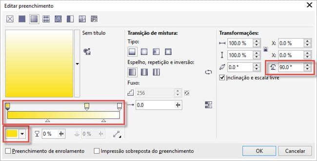 Agora, o objeto "Contorno" exibirá um preenchimento gradiente, como mostrado nos círculos vermelhos na imagem abaixo.