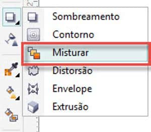 - Clique na ferramenta Misturar (Caixa de ferramentas > menu desdobrável Sombreamento > Ferramenta Misturar) e arraste o mouse de um círculo para outro.
