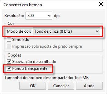 - Converta a cópia em um bitmap: Bitmap > Modo de cor > Tons de cinza (8 bits). Verifique se a opção "Fundo transparente" está marcada.