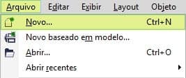 - Comece abrindo um novo documento. Vá para: Arquivo > clique em Novo… (ou use o atalho de teclado CTRL+N).