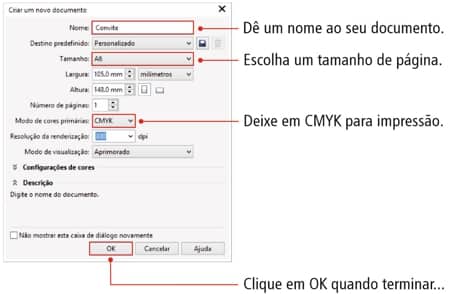 - Na janela Criar um novo documento, faça as seguintes alterações: