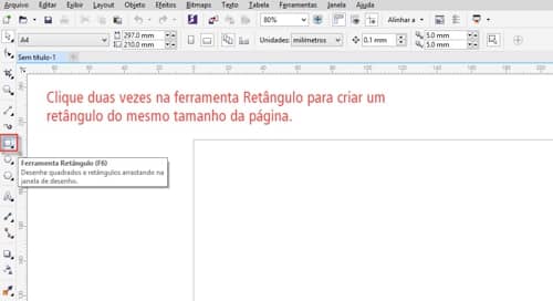 - Para criar um fundo colorido para o nosso cartão, basta clicar duas vezes na ferramenta Retângulo na caixa de ferramentas no lado esquerdo da tela.