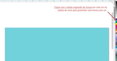 - Ao criarmos uma forma, podemos preenchê-la com cor, clicando com o botão esquerdo do mouse em uma cor na paleta de cores.