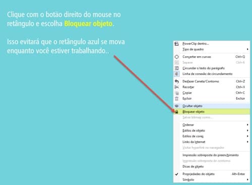 - Para que o nosso fundo não se mova enquanto criamos outros objetos, clique com o botão direito do mouse nele e escolha Bloquear objeto no menu contextual.