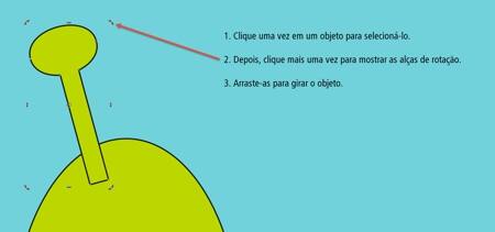 - O texto roxo aqui foi primeiro selecionado com a ferramenta Seleção e, depois, girado.