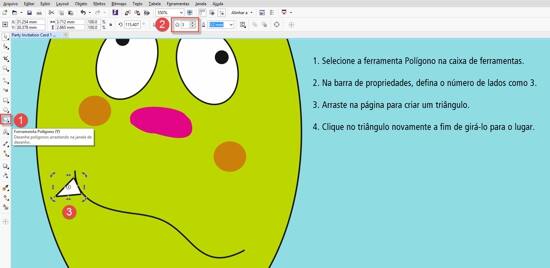- Use a ferramenta Polígono da caixa de ferramentas e, na barra de propriedades, defina o número de lados como 3.