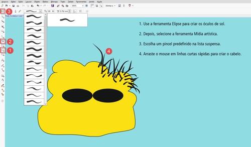 - O rosto na parte inferior foi criado com as ferramentas Elipse e Mídia artística.