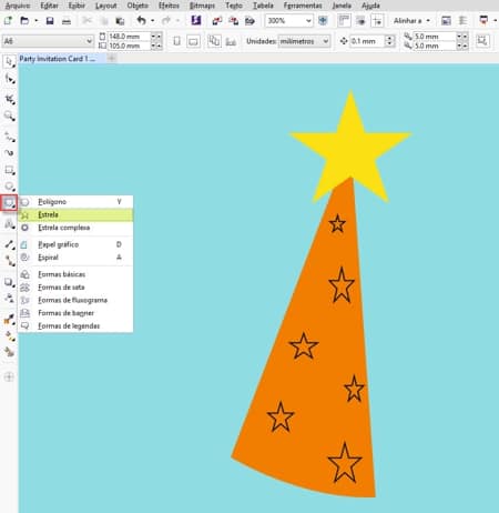 - Agora, selecione a ferramenta Estrela. (Você pode alterar o número de pontas da estrela na barra de propriedades.)