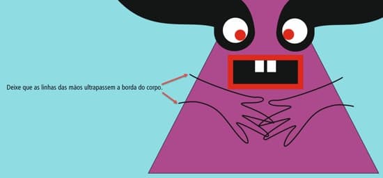 - Para desenhar as mãos, pegue a ferramenta Mão livre e desenhe algumas mãos no monstro, mas certifique-se de que as linhas "ultrapassem" a borda do corpo, assim: