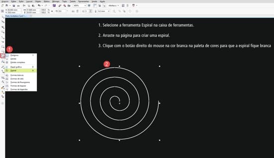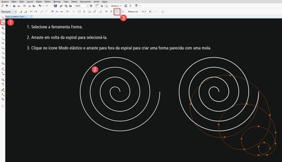 - Selecione a ferramenta Forma (F10), na caixa de ferramentas, e use-a para selecionar em torno da espiral.