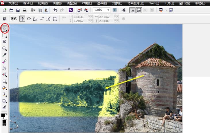 如果对图像频繁应用效果,您会发现将“效果工具”工具栏放在 PHOTO-PAINT 工作区中非常方便。