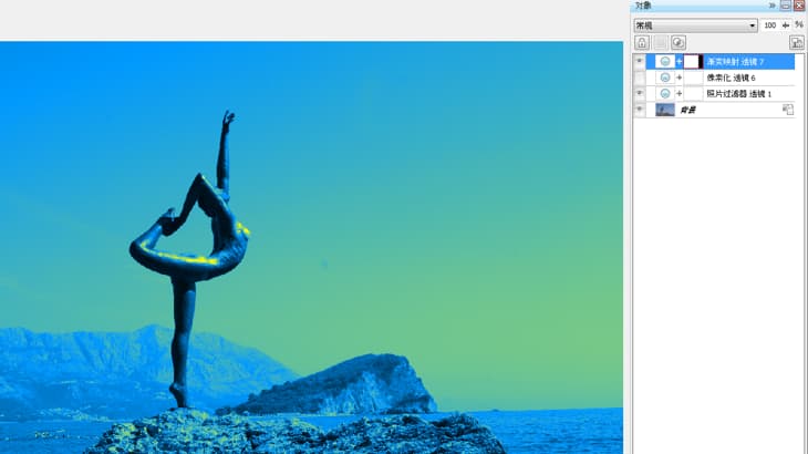 透镜图层的堆叠顺序对于形成的效果也有很大影响。 在此处,渐变映射透镜图层已经拖到了堆叠的最底层,形成了令人惊叹的效果。