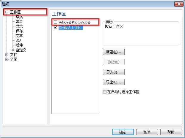 此处的“图层”称为对象。尽管名字有所不同,但您很就会得心应手。但如果记住 Corel PHOTO-PAINT 菜单中的命令名称为您造成不便,好吧,一切问题总有解决方案。转至工具 > 选项 > 工作空间,然后选择 Adobe Photoshop 工作空间。