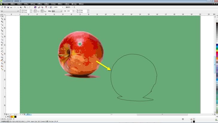 而且,如果您愿意,可同时操作这两个程序。CorelDRAW 和 Photoshop 是友好的搭档。这里,我们将就如何同时操作这两个程序提供一些建议。让我们从最基本,也是最常见的问题开始:如何移除图像背景。我们使用的示例是一个苹果图像。