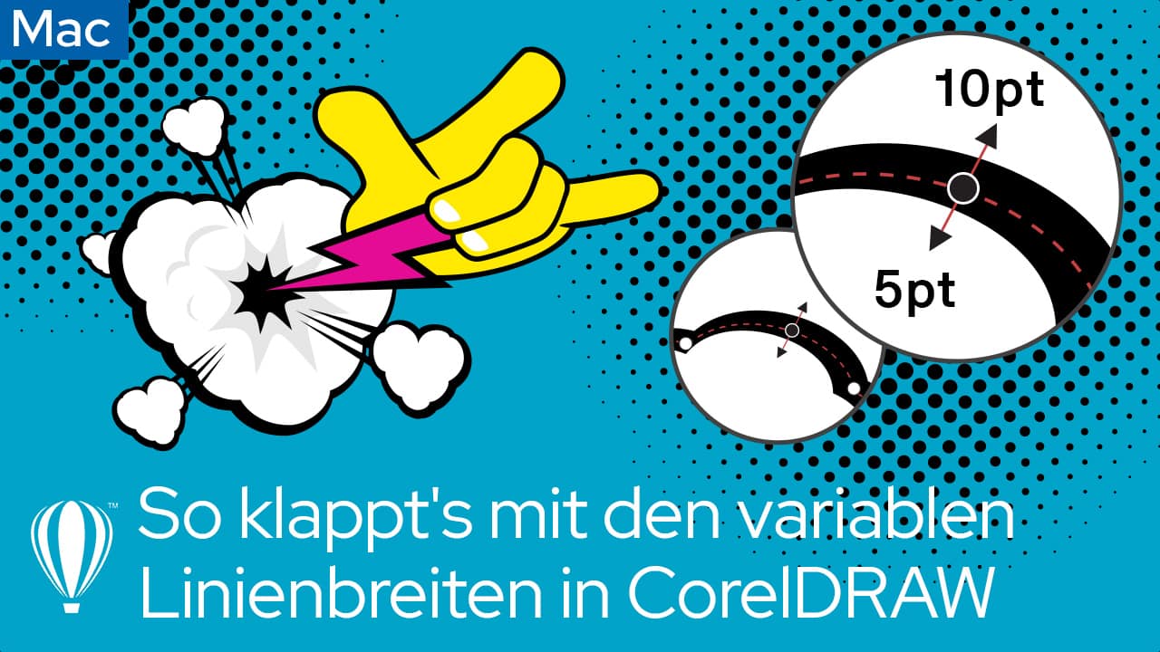 Mit dem Werkzeug Variabler Umriss, ganz neu in CorelDRAW März 2023 Update, stellt man Linienstärken beliebiger Pfade nach Wunsch ein. Jeder Pfad kann beliebig viele, variable Stärken haben. Das ist perfekt für technische Illustrationen und kreative Grafikarbeiten.