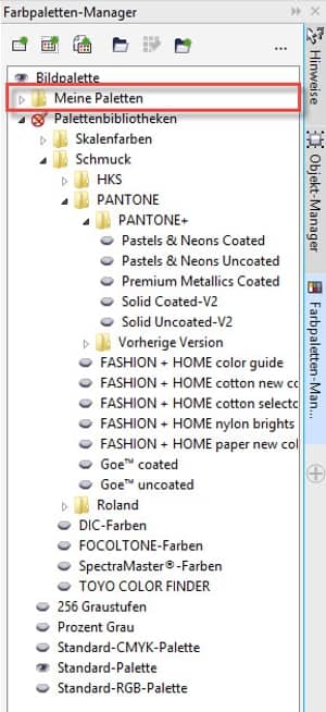 Und sobald ich mit der zweiten Illustration beginne, kann ich einfach auf die Schaltfläche Schnelles Anpassen neben dem Andockfenster Objektmanager klicken, den Farbpaletten-Manager öffnen und finde da im Ordner Meine Paletten die neue Palette „Redaktionelle Illustration“. So einfach und genial wie ein Gedicht.