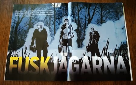 Ich schätze es auch, wenn ich vom Kunden – wenn möglich – ein Arbeitsmuster des Magazins als PDF erhalte, damit ich sehen kann, wie sie sich die Illustrationen im Magazin vorstellen. Ich öffne dieses in CorelDRAW und verwende es als Vorlage. Da es sich bei einer dieser beiden Illustrationen um eine Doppelseite handelt und die zweite, die kleinere, sich über zwei Seiten erstrecken soll, platziere ich in CorelDRAW auf der Mitte der Seite eine Hilfslinie und füge dann links und rechts der Mitte in einem Abstand von etwa 10 Millimetern eine weitere Hilfslinie ein. Damit stelle ich sicher, dass die Illustration immer vollständig zu sehen ist, wenn die Leser die Seiten umblättern. Ich habe auf diese Weise bessere Kontrolle über das Endresultat. Manchmal hat der Art Director jedoch noch nicht entschieden, wie das Layout am Ende aussehen soll. Dann frage ich einfach, ob es sich um ein hoch- oder querformatiges Bild handelt.