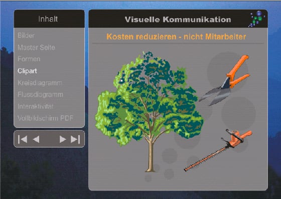 Nutzen Sie eine der Clipart-Grafiken auf CD 2 der CorelDRAW Graphics Suite oder ein eigenes Bild, um Ihre Informationen mit Bildern zu untermauern. Ein Beispiel dafür finden Sie in der ersten Illustration dieses Tutorials.