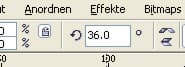 Ziehen Sie am Ankerpunkt, bis in der Eigenschaftsleiste ein Winkel von 36 Grad angezeigt wird.