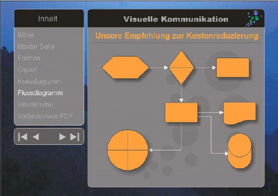 Mit einem Flussdiagramm können komplexe Begebenheiten anschaulich vermittelt werden. CorelDRAW enthält viele gebrauchsfertige Symbole, die zur Erstellung eines Flussdiagramms verwendet werden können. Die Symbole können außerdem mit Linien verbunden werden, die sich an den Symbolen einrasten lassen. Wenn Sie die Diagrammsymbole verschieben, werden auch die Linien entsprechend angepasst.