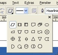 In der der Hilfsmittelpalette finden Sie das Flyout Grundformen.