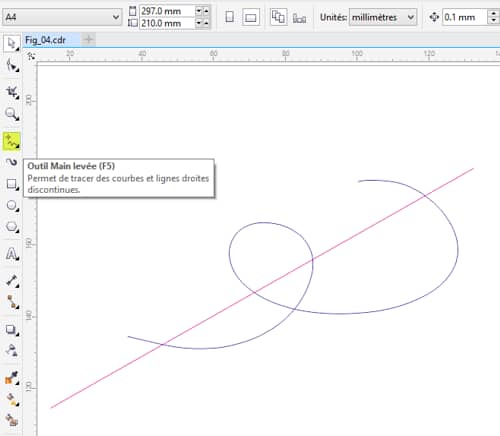 Pour les besoins de cet exercice, nous allons utiliser deux lignes simples, tracées à l'aide de l'outil Main levée.