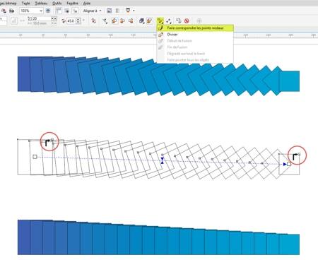 - L'option Faire correspondre les points nodaux permet d'obtenir des formes régulières et des dégradés plus parfaits, étant donné que vous disposez d'un plus grand contrôle sur le résultat obtenu.