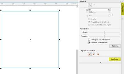 Sélectionnez maintenant les deux carrés, puis choisissez Effet/Dégradé pour ouvrir le menu fixe Dégradé. Cliquez sur le bouton Appliquer sans modifier les valeurs par défaut.