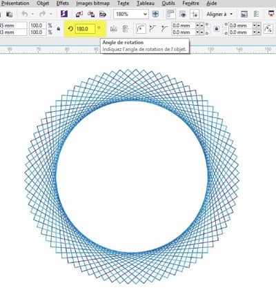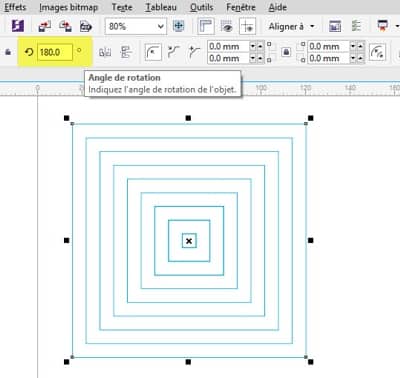 Sélectionnez le même carré et changez la rotation en 180º. Vous obtenez à présent un cercle !