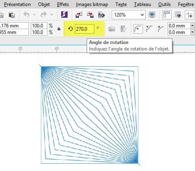 Maintenant, sélectionnez encore une fois le même carré et modifiez la rotation en sélectionnant 270°.