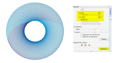 Si vous choisissez 150 étapes, 360º et Boucle, vous obtenez un anneau !
