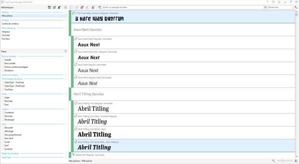CorelDRAW X8 est livré avec une application autonome appelée Corel Font Manager, solution très pratique pour gérer les polices sur un système.