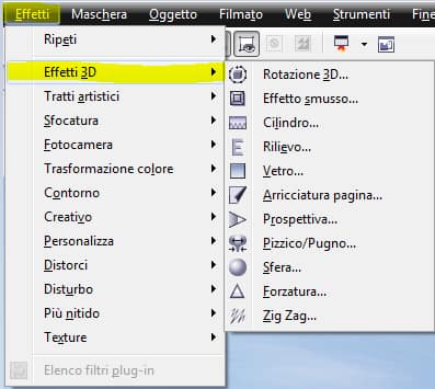 Di seguito sono elencate le categorie di effetti speciali disponibili, ognuna delle quali include numerosi effetti diversi: