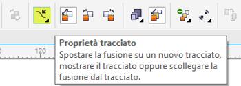 Selezioniamo il gruppo di fusione e facciamo clic sull'icona Nuovo tracciato nella barra delle proprietà strumento Fusione. Il cursore si trasforma in una freccia nera ondulata.