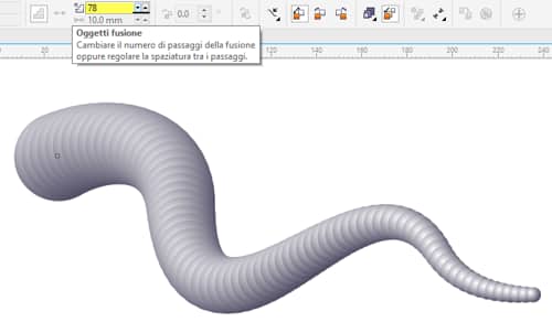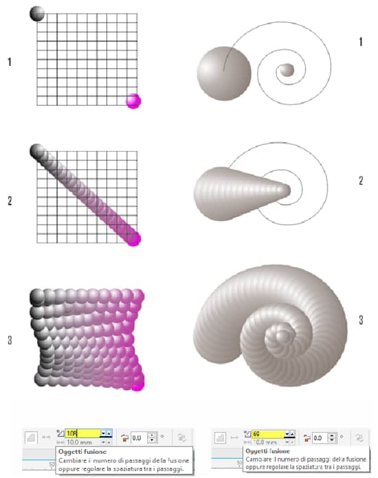 L'effetto può essere ottimizzato aumentando il numero di passaggi nella fusione o modificando le dimensioni del primo o del secondo oggetto. Lo strumento Fusione è altamente interattivo e permette di visualizzare le modifiche appena effettuate.