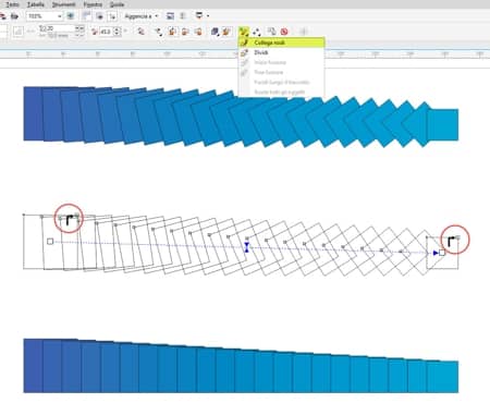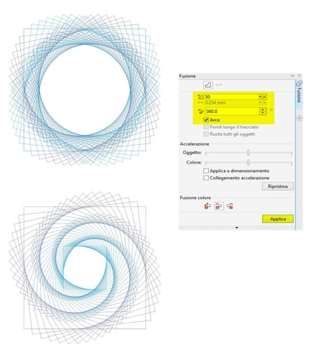 Lo strumento Fusione è una delle funzionalità più vecchie e utili di CorelDRAW. Fondere degli oggetti significa trasformare un oggetto in un altro seguendo una progressione di forme e colori. In questo modo si ottengono risultati molto interessanti.