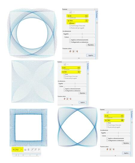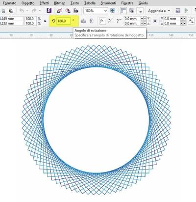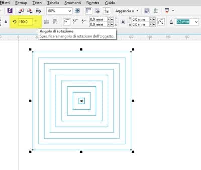 Selezioniamo di nuovo lo stesso quadrato e modifichiamo la rotazione su 180º. Ora abbiamo un cerchio!