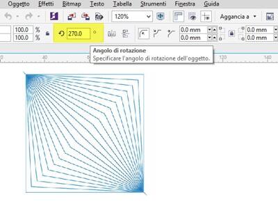 Ora, sempre selezionando lo stesso quadrato, modifichiamo la rotazione su 270°.