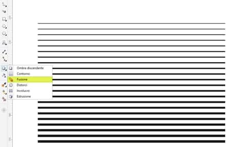 - Selezionare lo Strumento Fusione interattiva nella bandierina degli strumenti Effetti. Quindi, trascinare lo strumento da una linea all'altra (l'ordine non è rilevante in questa fase). Il risultato deve essere un gradiente di linee.