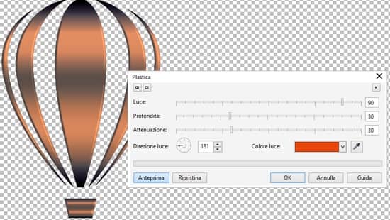 In PHOTO-PAINT selezionare l'oggetto e andare a: Effetti > Texture > Plastica...