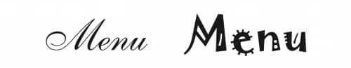 「Menu」という単語に適用された 2 つの書体のうち、右のカジュアルな書体よりも左のエレガントな書体の方が高級レストランのメニューに適しています。