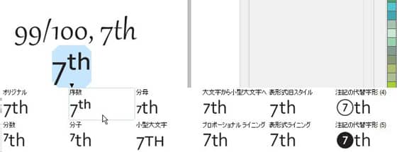 序数: E序数とは、First、Second、Seventh などのような物の順序を表す数です。この機能をサポートするフォントでは、1st、2nd、7th などのように入力できます。