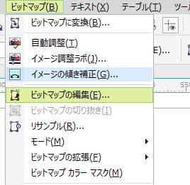 ベクタ オブジェクトのみを選択してビットマップに変換します。まず、[ビットマップ] > [ビットマップに変換] をクリックします。変換したら、[ビットマップ] > [ビットマップの編集] をクリックして Corel Photo-PAINT で画像を開きます。
