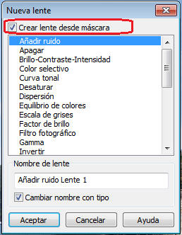 El menú Ayuda proporciona acceso a información adicional acerca de cómo trabajar con lentes y efectos, así como: