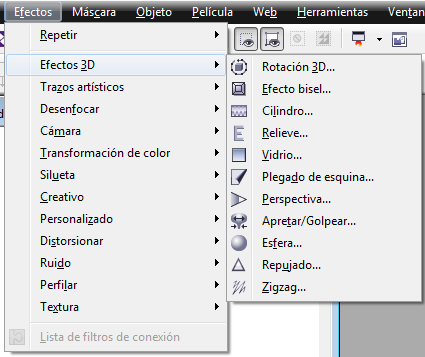 A continuación se indican las categorías de efectos especiales disponibles, cada una de las cuales incluye a su vez diversos efectos diferentes: