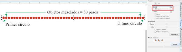 - Abre la ventana acoplable Mezclar y define 50 pasos.
